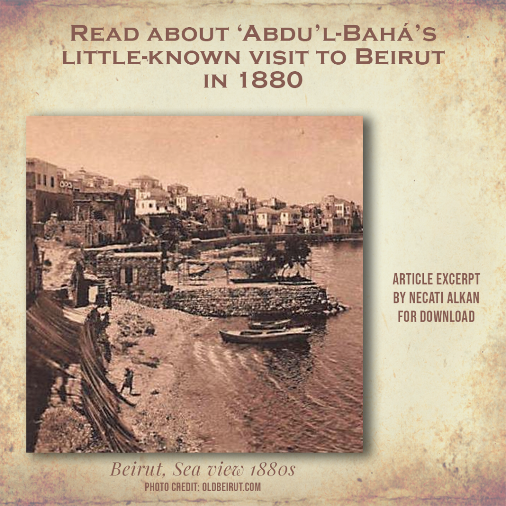 This small section of a groundbreaking research article by Necati Alkan entitled “entitled Midhat Pasha and ‘Abdu’l-Bahá in ‘Akká: The Historical Background of the Tablet of the Land of Bá “ provides light into a little-known chapter in ‘Abdu’l-Bahá’s life, His travels to Beirut (referred to as “the Land of Bá” by Bahá’u’lláh in his extraordinarly moving Tablet, the Lawḥ-i-Arḍ-i-Bá or Tablet of the Land of Bá (Beirut). This excerpt is reprinted with permission from the Author. The full article is accessible by clicking on the link below: